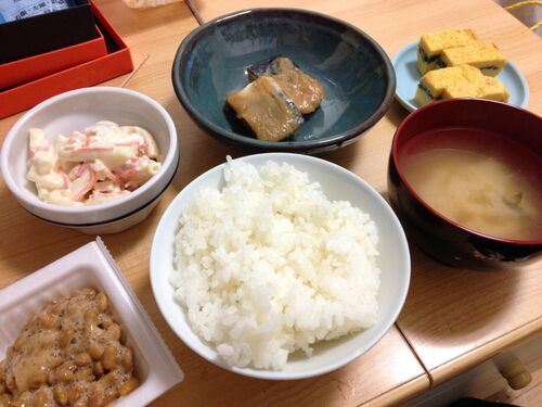 今週もお仕事がんばったので、何か美味しいもの食べたいなーと考えて 考えて、考えて、考えて… 出た結論がコレでした。笑 海苔入り卵焼き(105円@セイコーマート) さばの味噌煮(105円@セイコーマート) マカロニサラダ(118円@セブンイレブン) インス…