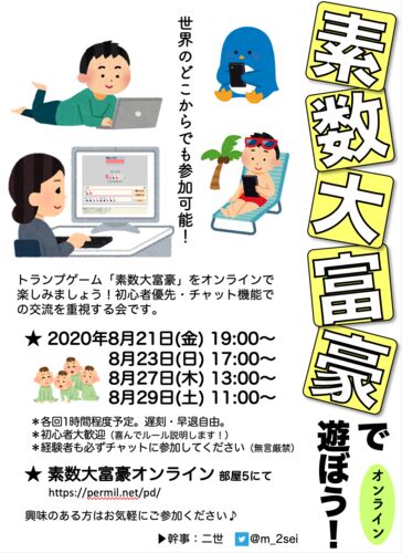日付がいいかんじの四つ子だったので素数大富豪オンラインで遊ぼう会してみた
